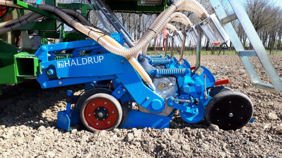 La seminatrice di precisione HALDRUP SP-35, con elementi di semina Monosem, consente la semina di specie sarchiate in terreni di varia tessitura e preparazione (dalla lavorazione tradizionale, alla minima lavorazione, alla semina su sodo).